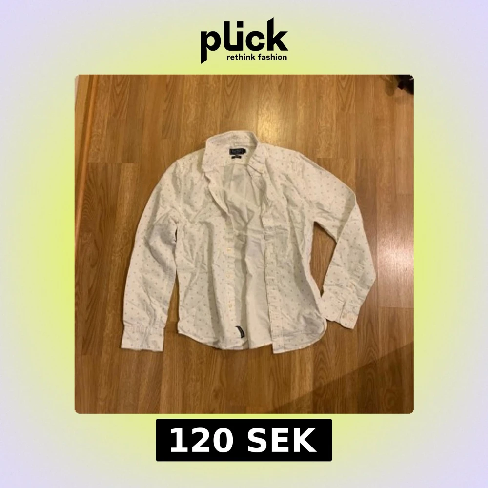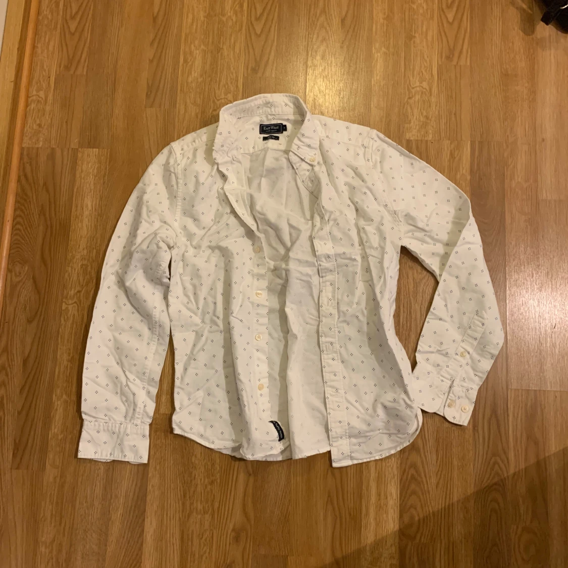 Säljer en vit skjorta från East West med små diskreta mönster i hela tyget. Skjortan har klassisk krage, knäppning framtill och långa ärmar med manschett.