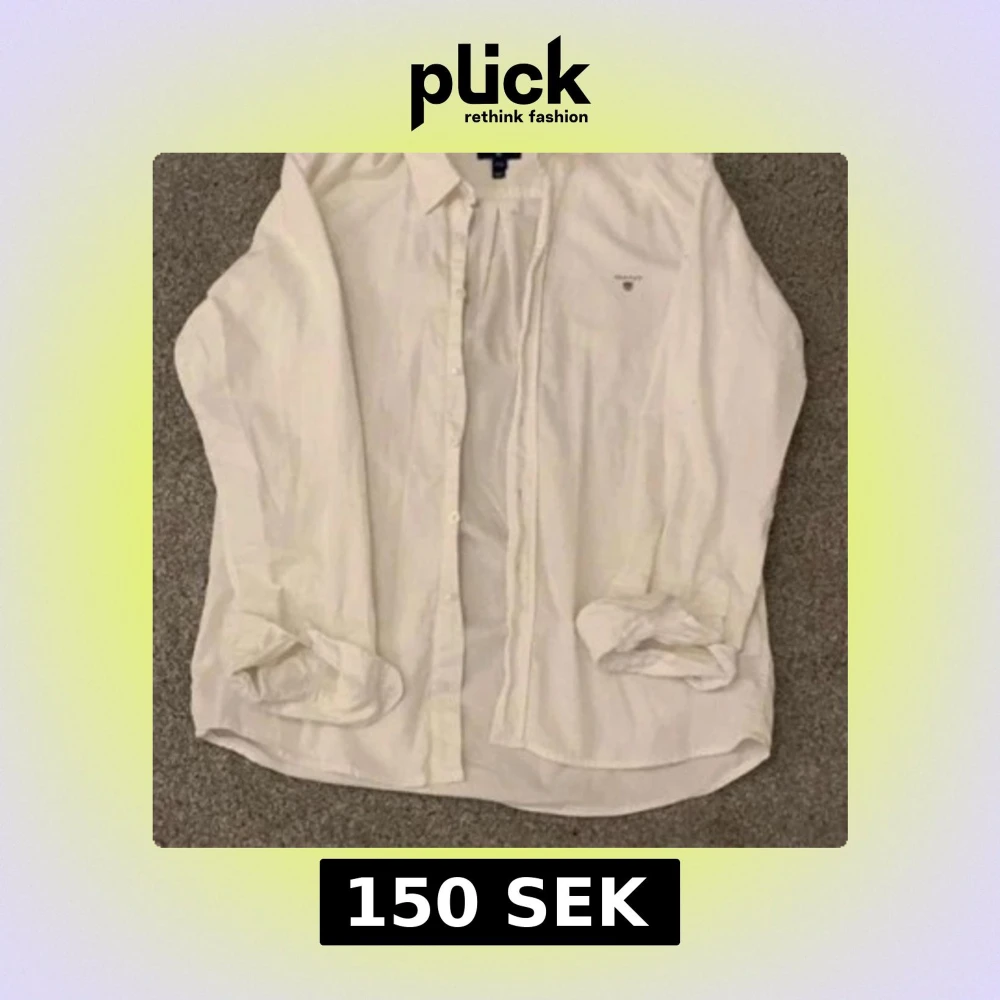 Säljer en klassisk vit skjorta från GANT. Skjortan har långa ärmar och knappar framtill. Perfekt för en stilren look.