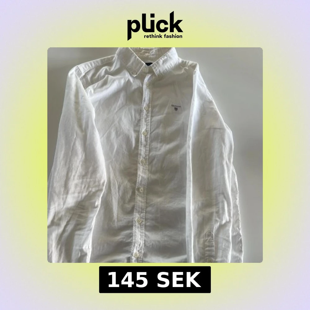 Klassisk vit skjorta från Gant med broderad logga på bröstet. Skjortan har lång ärm, knappar framtill och krage. Storlek 158/164 cm (13-14) vilket motsvarar ungefär xs i herrstorlek. Perfekt för en stilren look och passar till många tillfällen. Skriv bara vid minsta fråga, priset kan diskuteras!