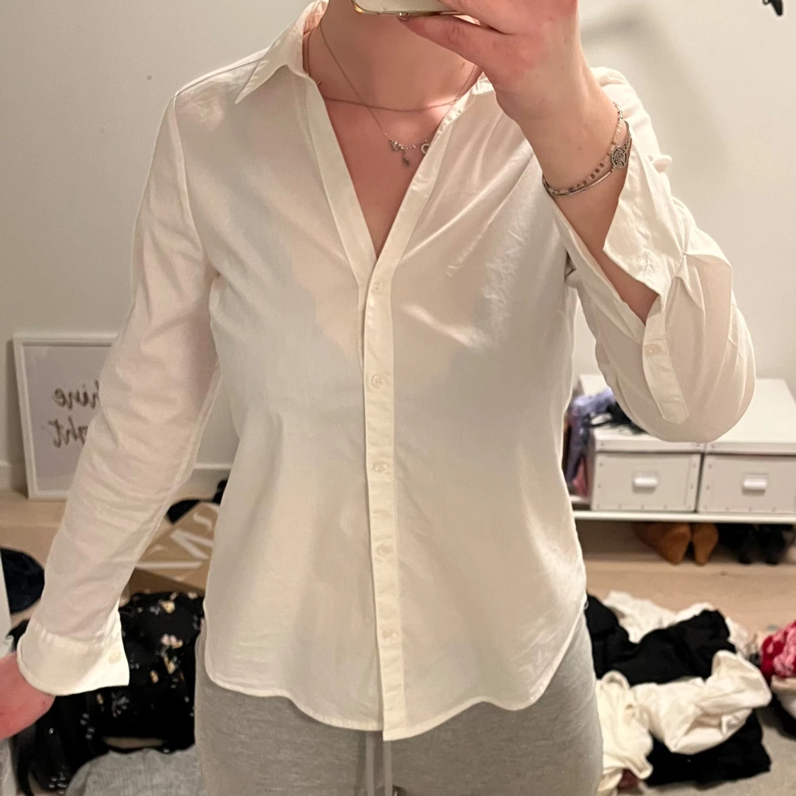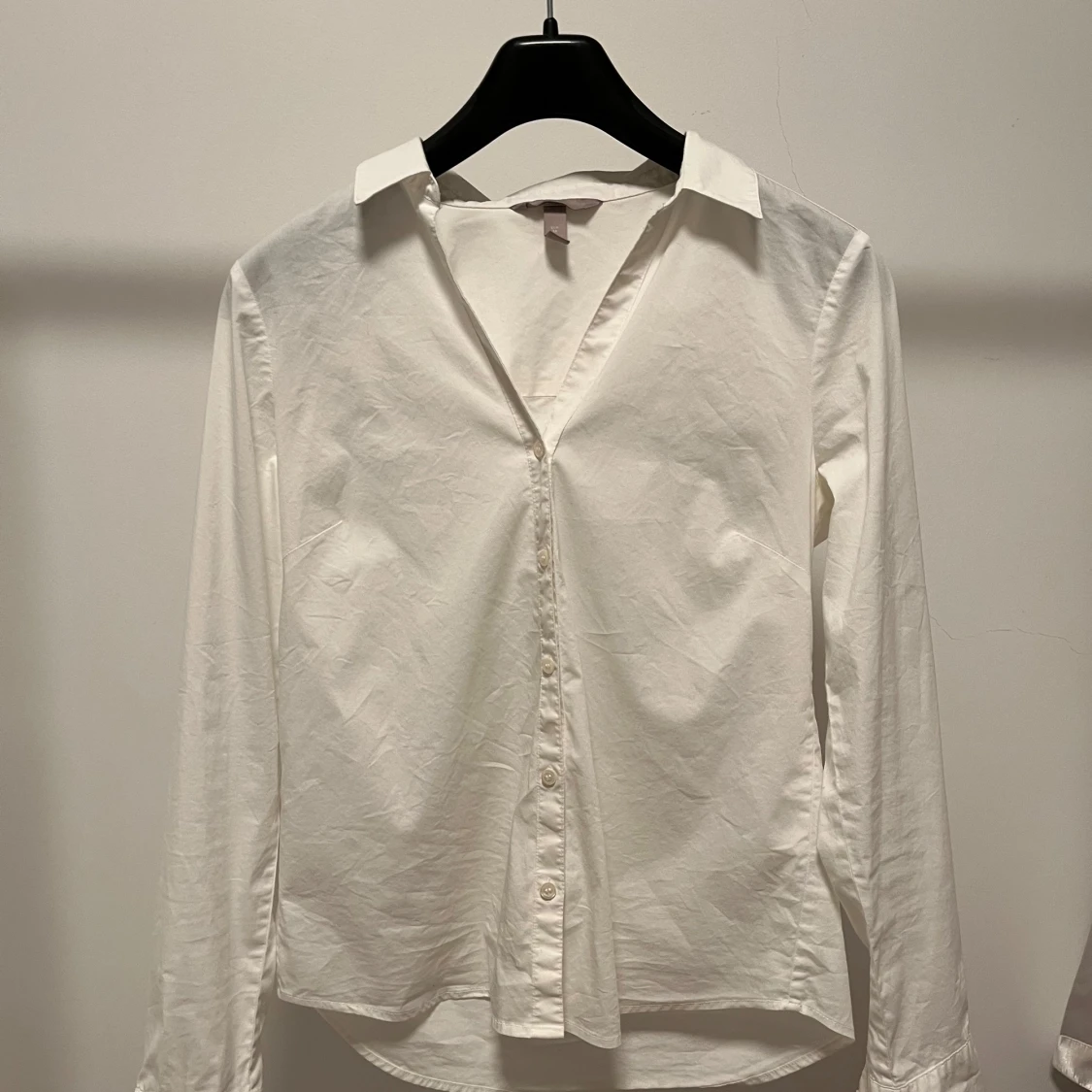 Säljer en klassisk vit skjorta från H&M i storlek 38. Skjortan är figursydd och v- ringad, perfekt för en stilren look. Bara att skriva om fler bilder önskas💕