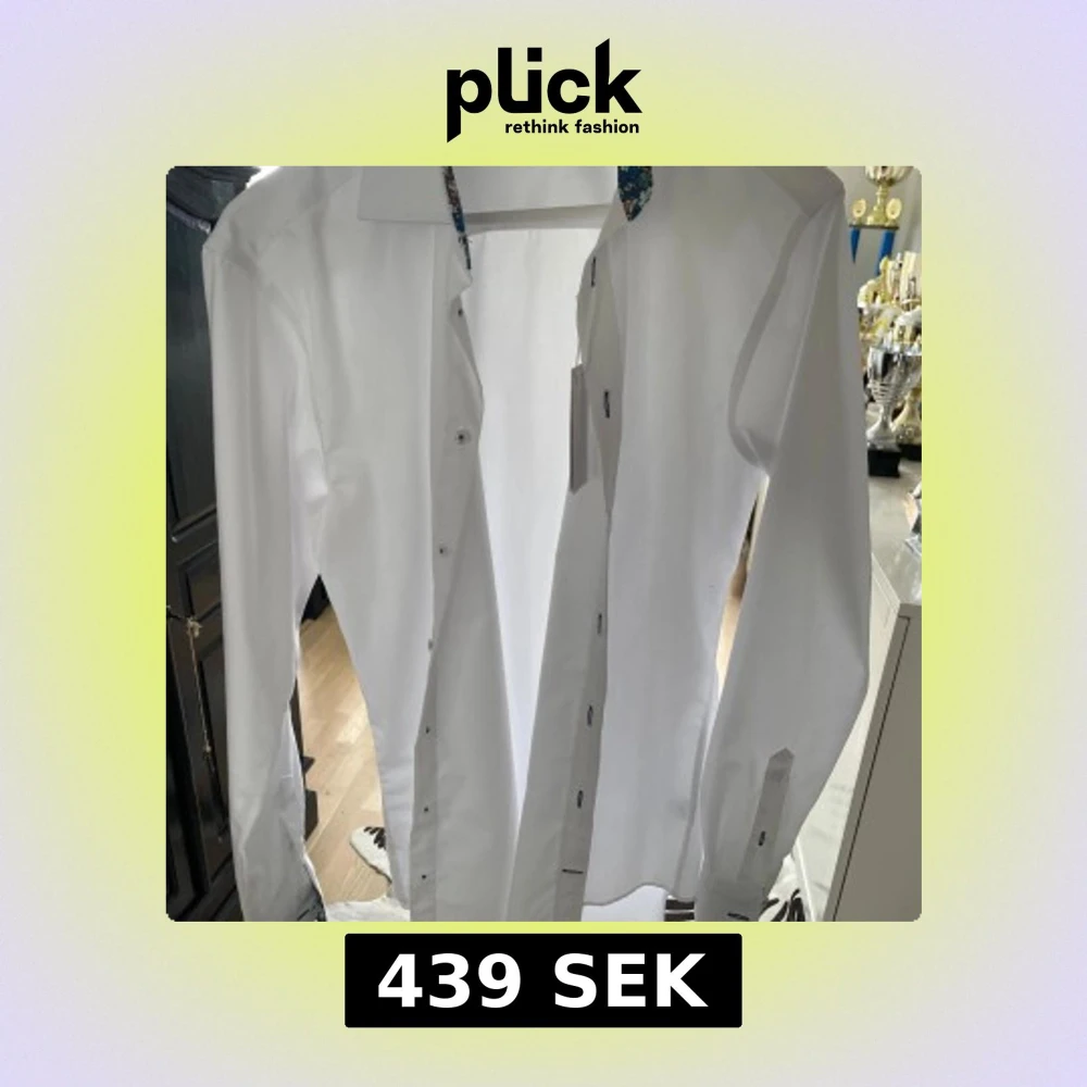 Säljer en stilren vit skjorta från John Henric i storlek 39 med tagg fortfarande på. Skjortan har lång ärm och klassisk passform med snyggt blommigt mönster på insidan av kragen. Perfekt för dig som vill ha en diskret men unik detalj på skjortan.