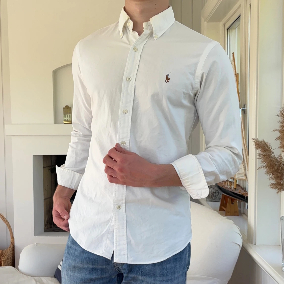 Vit skjorta från Polo Ralph Lauren i slim fit med klassisk button-down krage och broderad logga på bröstet. Skjortan har långa ärmar och knappar framtill. Tillverkad i mjuk bomull som känns skön mot huden. Perfekt för dig som gillar stilren och tidlös look.