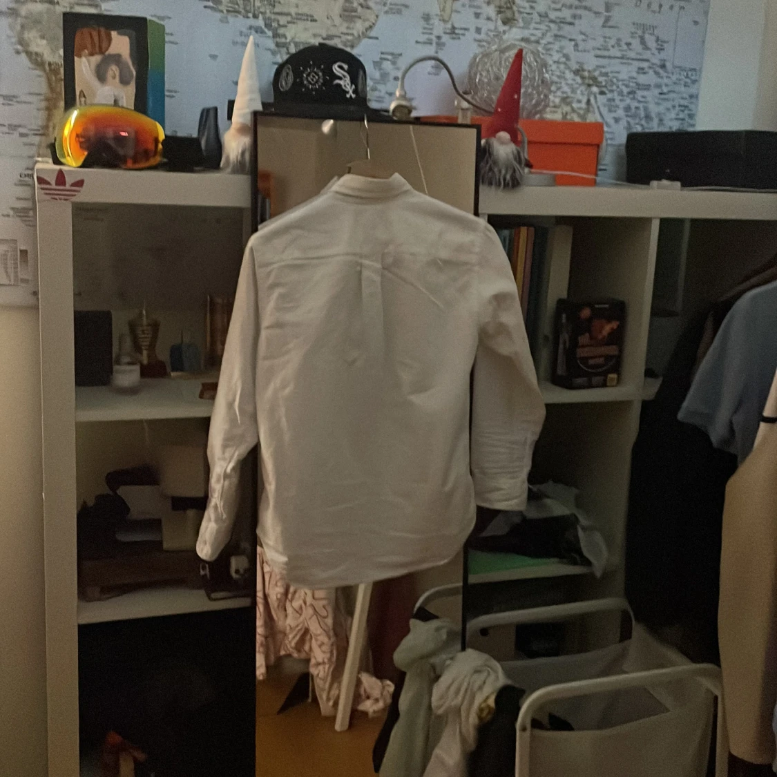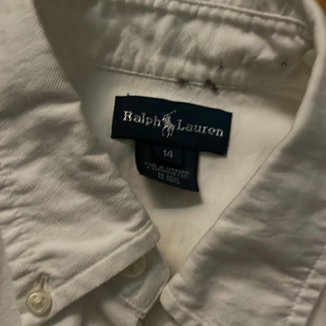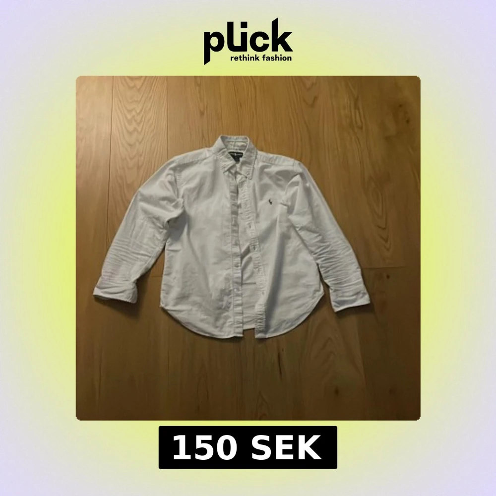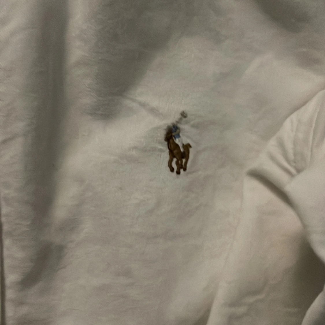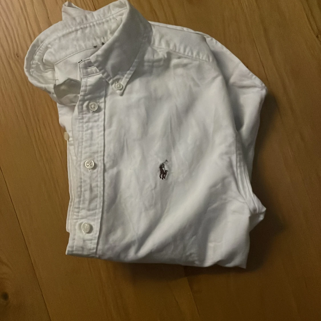 Säljer en klassisk vit skjorta från Ralph Lauren med broderad logotyp på bröstet. Skjortan har långa ärmar och knappar framtill. Perfekt för en stilren look.