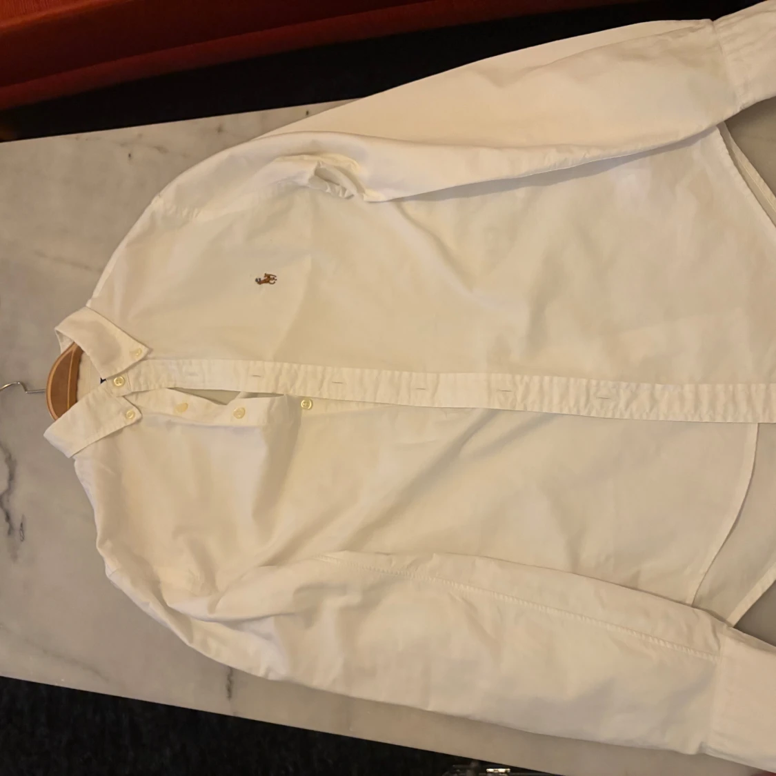 Klassisk vit skjorta från Ralph Lauren i bra skick utan några hål eller fläckar. Storlek s men sitter som xs, passa någon som är runt 173