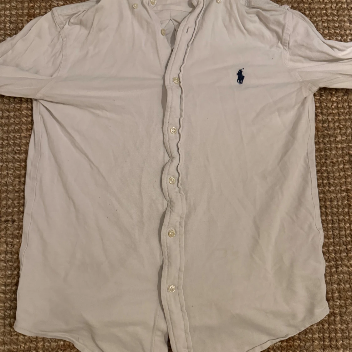 Säljer en klassisk vit skjorta från Ralph Lauren i featherweight mesh. Skjortan har långa ärmar och knappar framtill. Loggan är broderad på bröstet i blått. Perfekt för en stilren look.