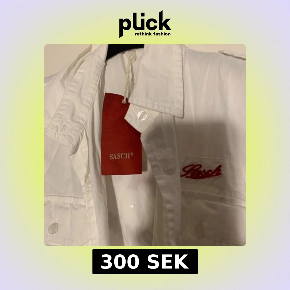 Vit skjorta från Sasch med röd broderad logga på bröstet och stort broderi på ryggen. Klassisk krage, två bröstfickor med knappar och lång ärm. Perfekt för dig som gillar detaljer och streetinspirerad stil.