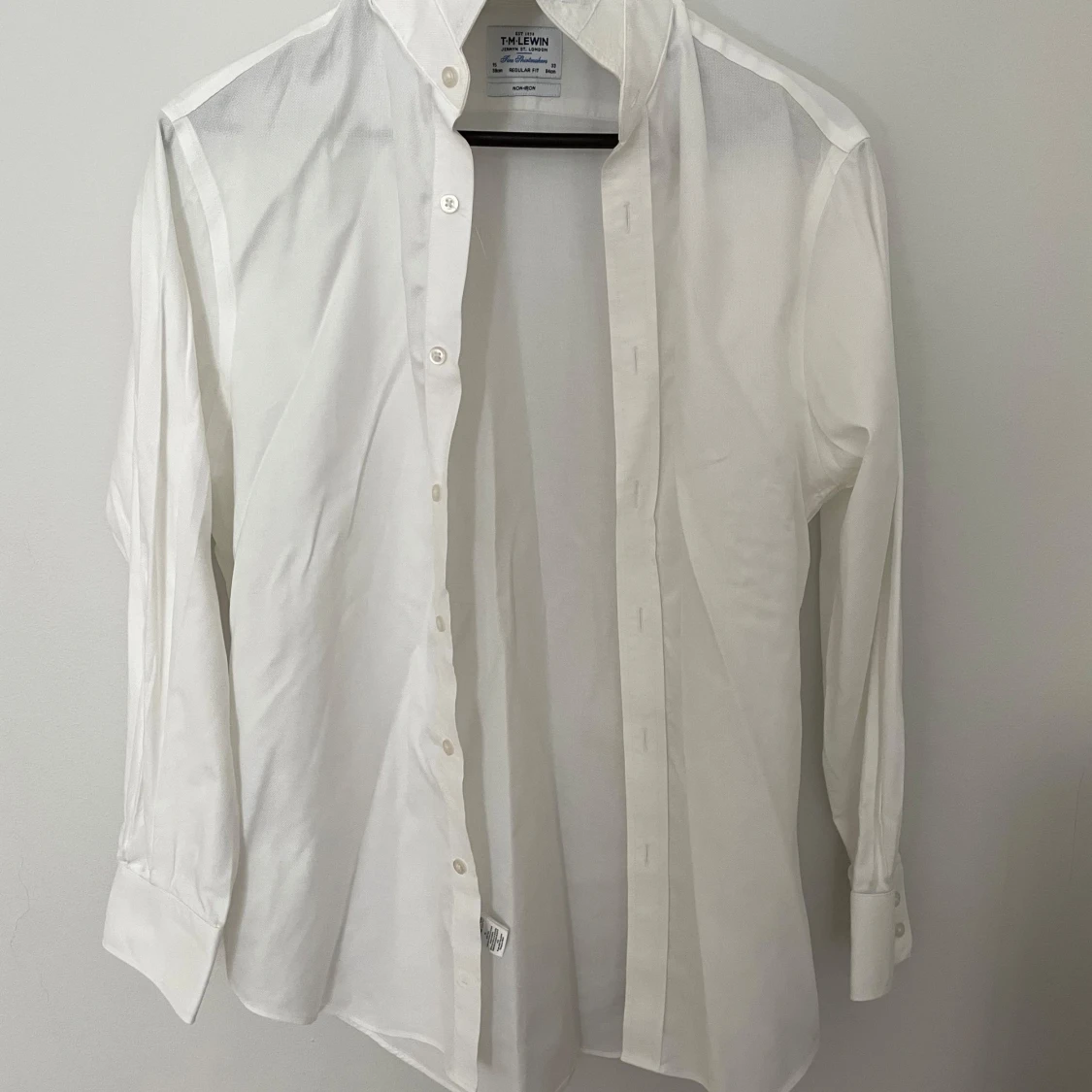 Klassisk vit skjorta från T.M. Lewin i regular fit med lång ärm och knappar framtill. Skjortan är tillverkad i bomull och har en stilren, tidlös design med bred krage och manschetter med knappar. Perfekt för dig som gillar en clean och enkel look.