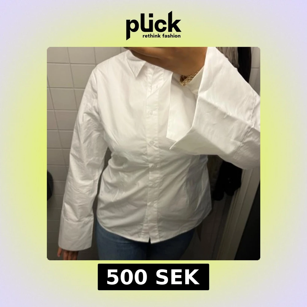 Klassisk vit skjorta i bomull med krage och knäppning framtill. Skjortan har långa, vida ärmar. Från neo nior och i storlek 36.