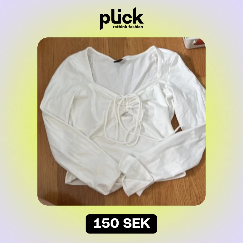 Jättesöt vit tröja ifrån Gina. Aldrig använt, passar jättebra till blåa jeans/shorts. Säljer för 150🫶🏼💕