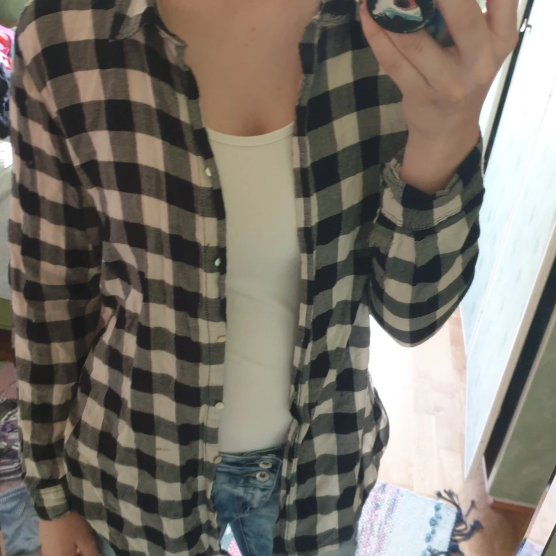 vit och svart randig mjuk skjorta. Använd sparsamt. Priset går att diskutera och frakt ingår ej.