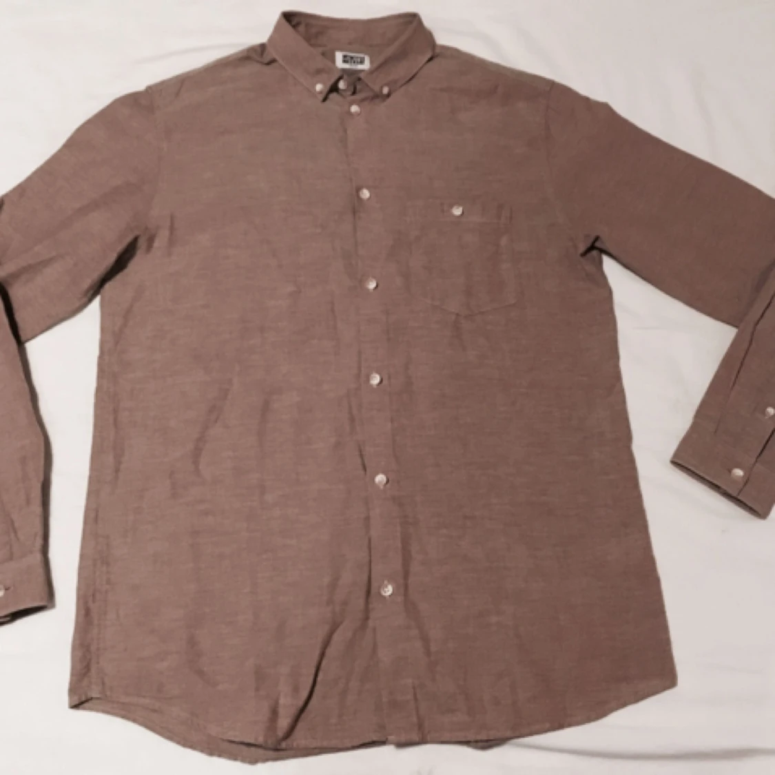 Mörkbeige/askbeige/ljusbrunish skjorta som är oanvänd. Bommul. Regular fit.