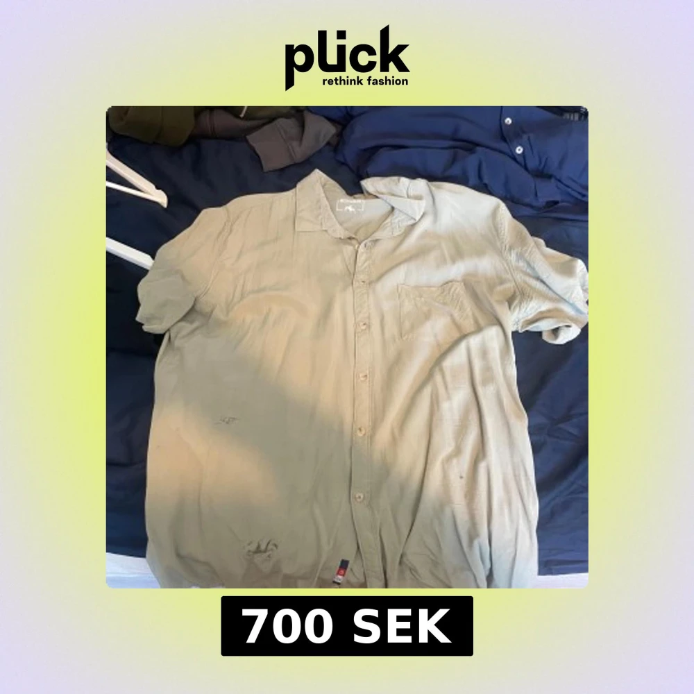 Säljer två stilrena skjortor från Equalized i storlek XL. Ena är marinblå och den andra beige, båda med klassisk krage, korta ärmar och bröstficka. Skjortorna har knappar framtill och är gjorda i mjukt bomullsmaterial som känns skönt mot huden.