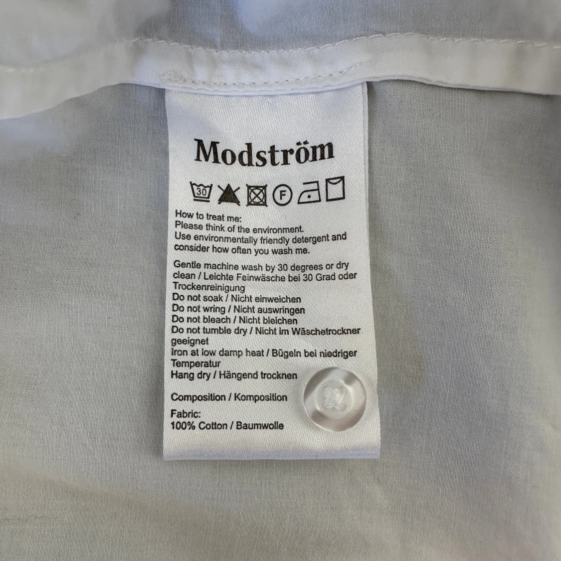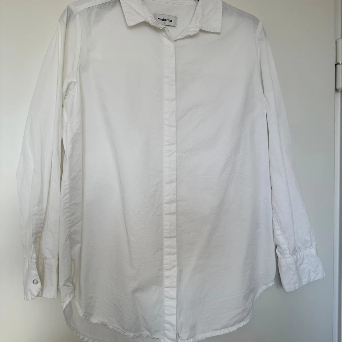 Klassisk vit skjorta från Modström i 100% bomull. Skjortan har lång ärm, knappar framtill och en tidlös krage. Perfekt för en clean och stilren look. Passar dig som gillar enkel och fräsch stil.