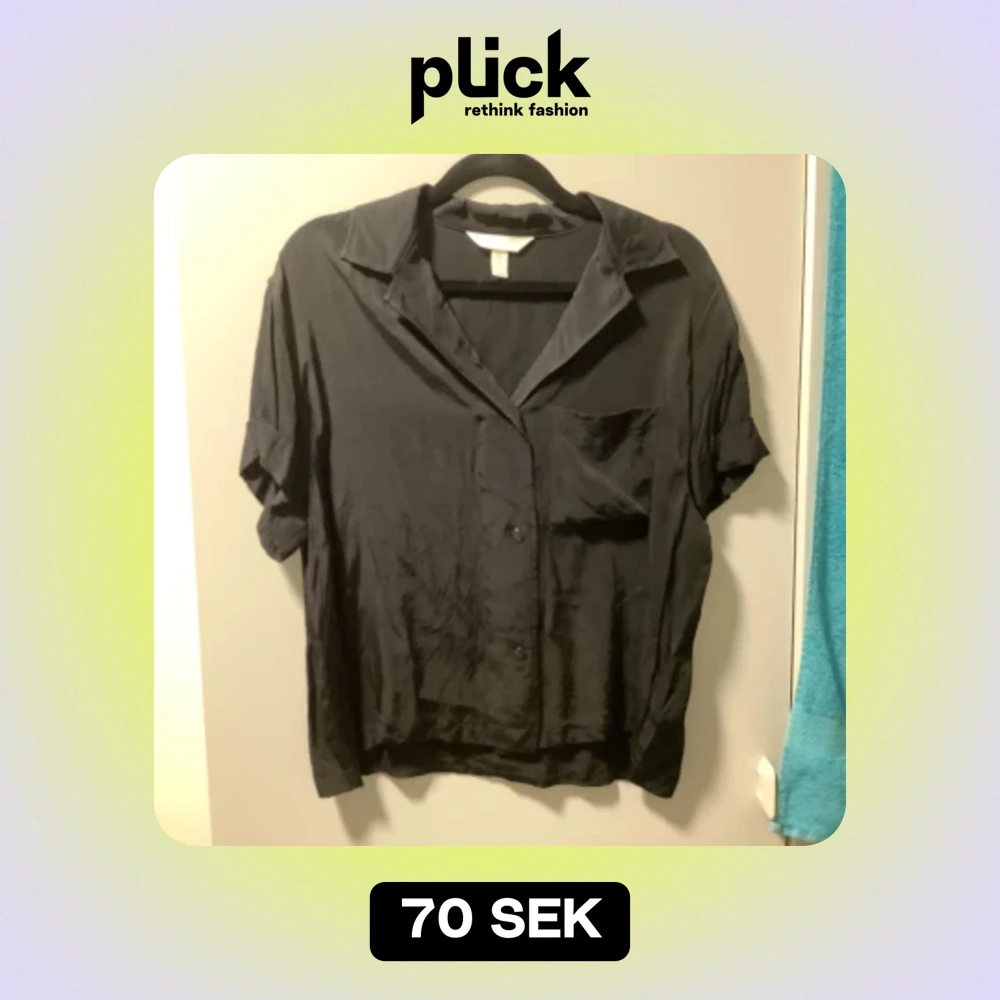 Kortärmad svart skjorta från H&M i strl XS i satinmatrial, sparsamt använd