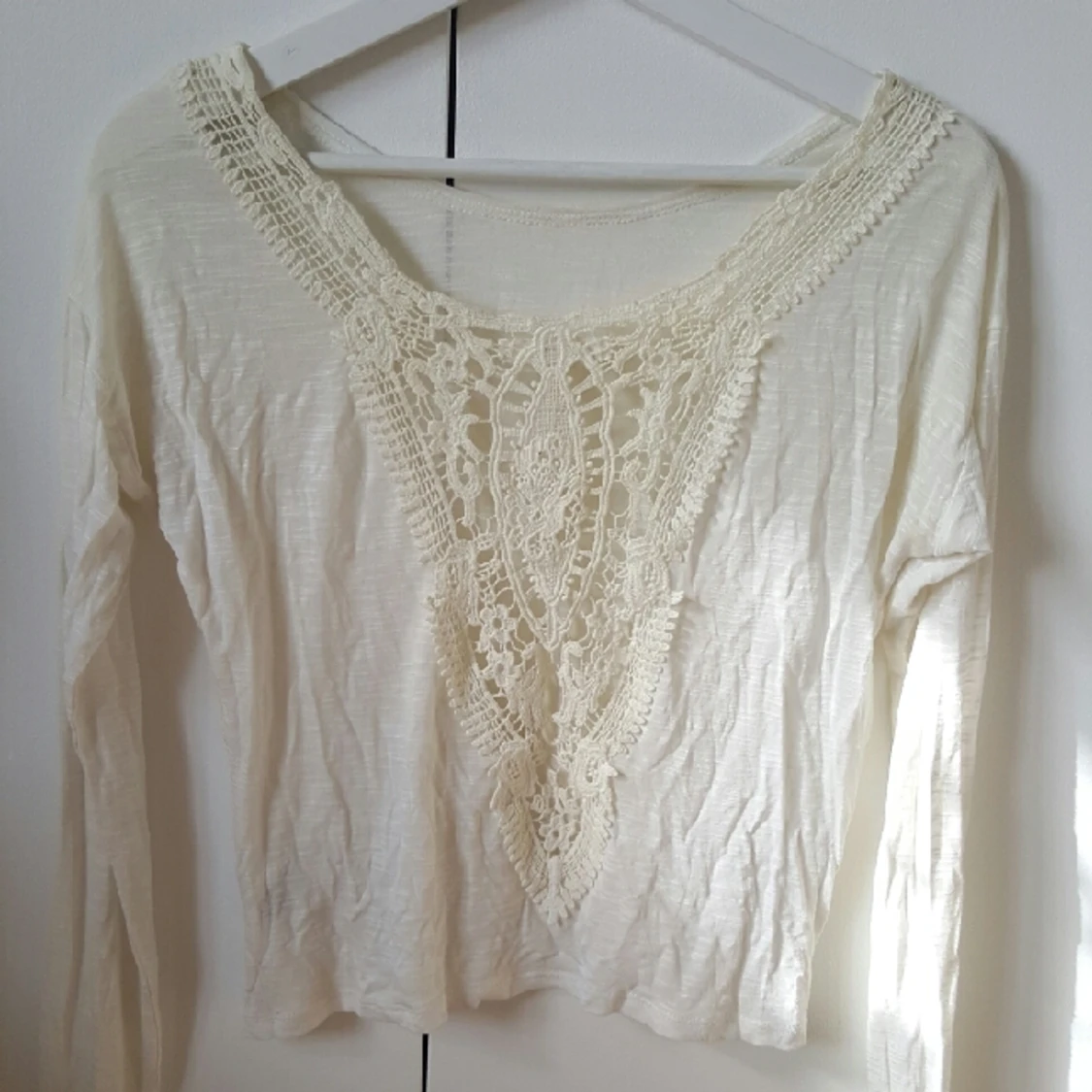 Fin sommrig tröja i tunt material med söta detaljer i bak. möter gärna upp i Uppsala annars står köparen för frakt vilket ligger på ca 20 kr :))