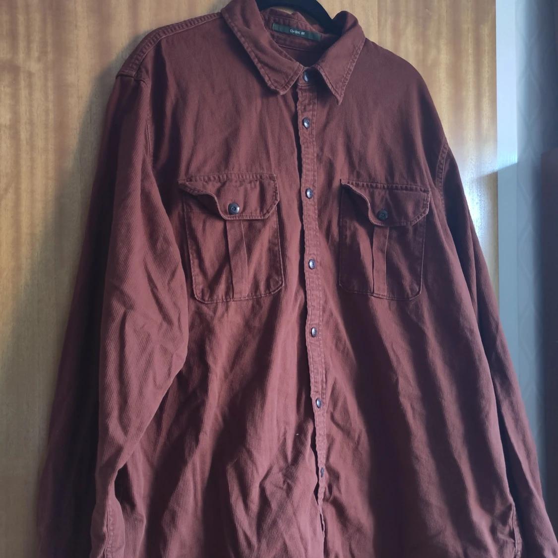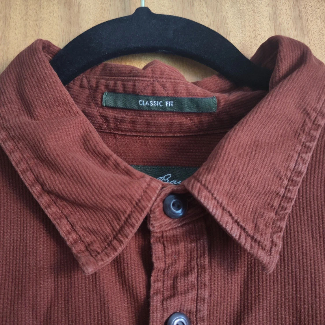 Säljer en brun ostruken långärmad skjorta från Classic Fit. Skjortan har knappar framtill och två bröstfickor med knappstängning. Perfekt för en avslappnad stil.