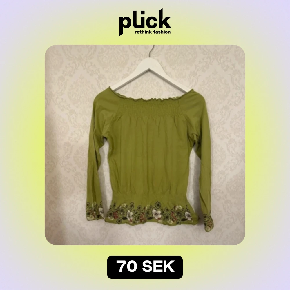 Offshoulder Grön tröja köpt på secondhand. Den är i bra skick och passar S också.