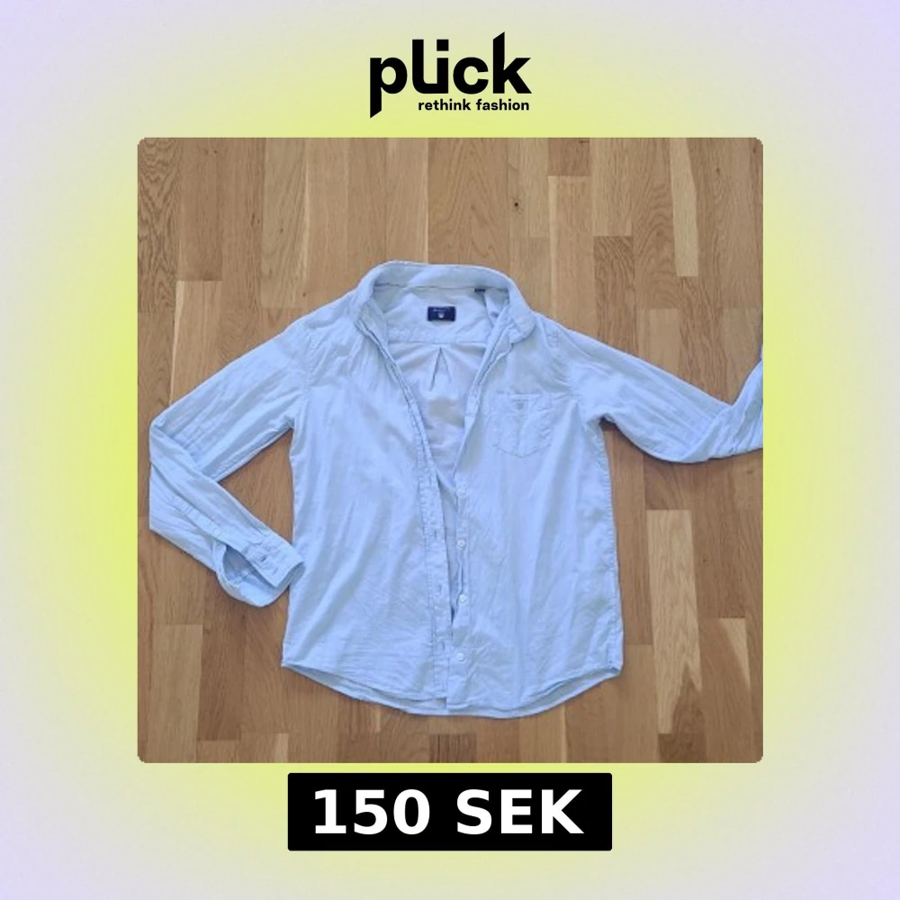 Ljusblå skjorta från GANT med knappar framtill och en bröstficka. Kan bäras på olika sätt, se bild 2. Köparen står för frakten🤍
