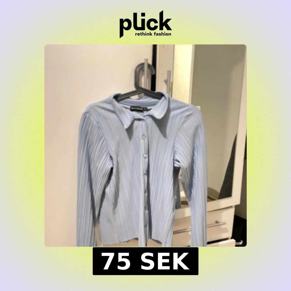 Säljer en stilren ljusblå skjorta från PrettyLittleThing. Skjortan har ett plisserat mönster och knappar framtill. Perfekt för alla tillfällen