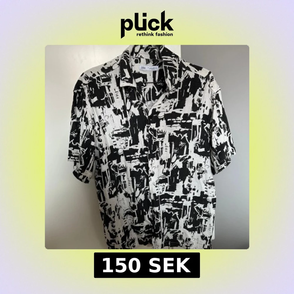 Cool svartvit skjorta från Zara med abstrakt mönster och korta ärmar. Skjortan har klassisk krage och knäppning framtill. Perfekt för dig som vill sticka ut med en unik stil.