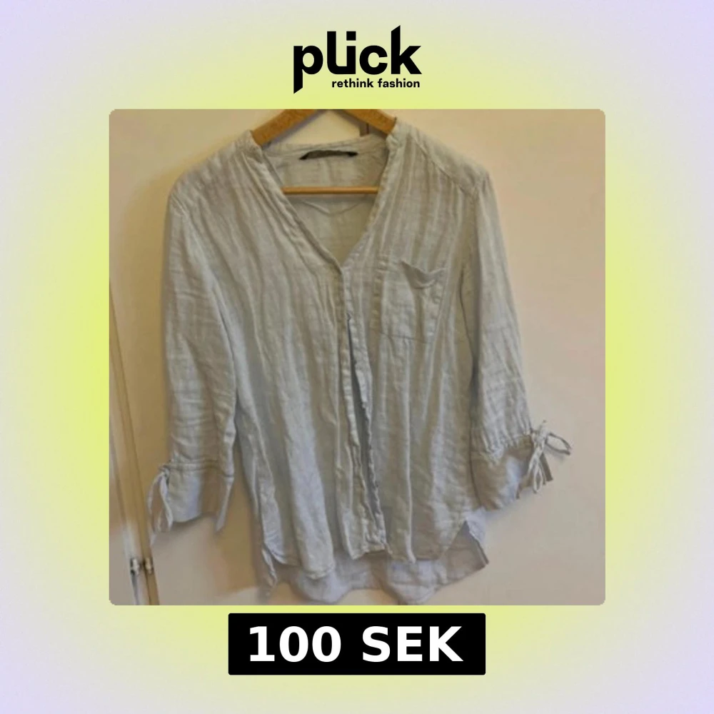 Luftig ljusgrå skjorta i linne från Zara. Skjortan har v-ringning, knappar framtill, bröstficka och trekvartsärmar med snörning vid ärmsluten. Perfekt för en chill och stilren look under varmare dagar.
