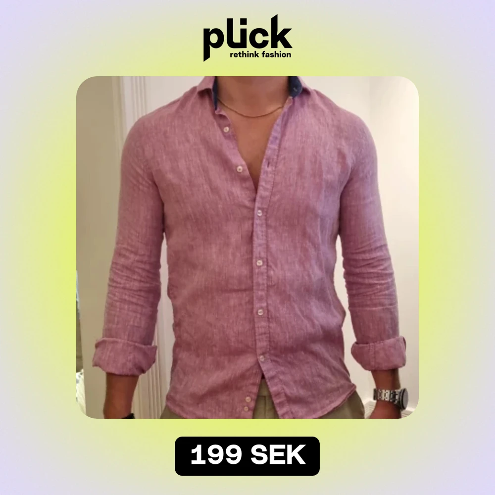 Rosa långärmad skjorta av 100% linne. Krage med slag och ärmslut med knappar. Använd ett fåtal gånger, mycket bra skick. Slim fit.