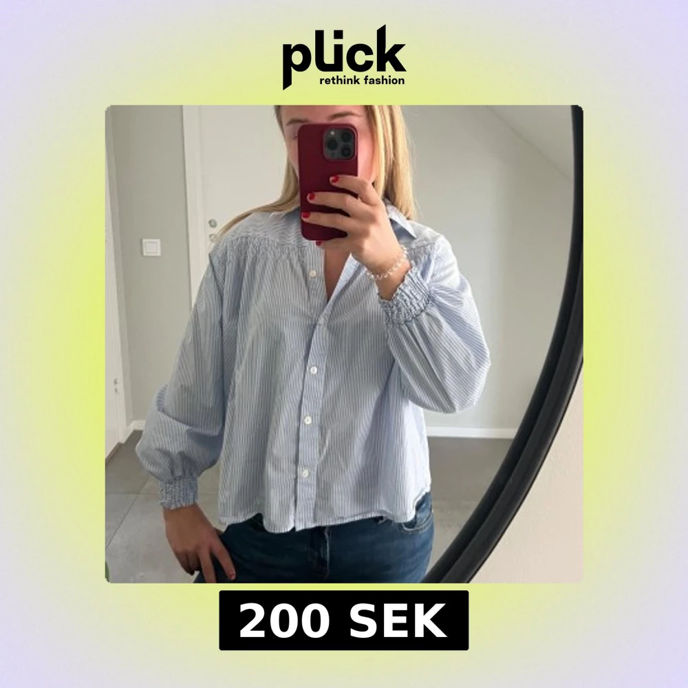 Säljer en stilren blåvit randig blus med långa ärmar och knappar framtill. Blusen har en lös passform och elastiska ärmslut för extra komfort. Perfekt för en avslappnad men ändå elegant look.🩵