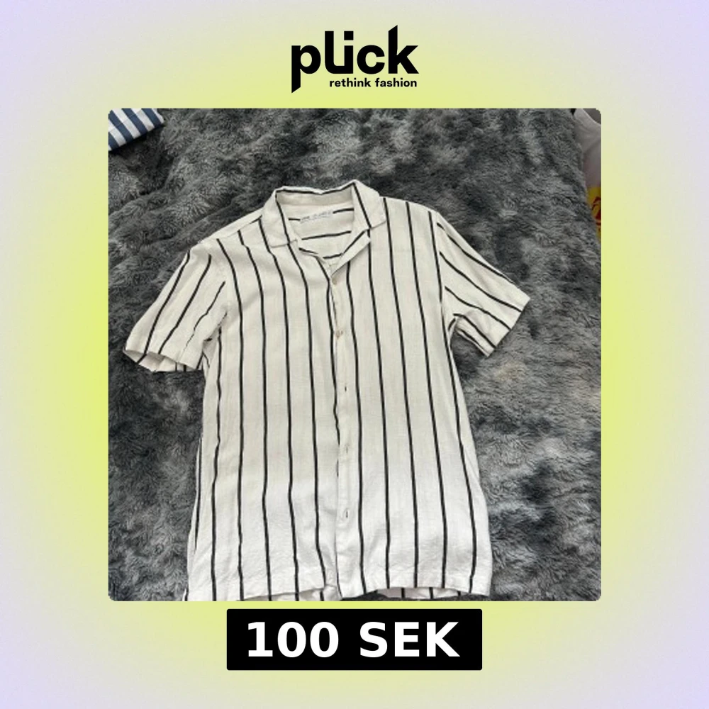 Vit skjorta från Zara med svarta vertikala ränder, klassisk krage och knäppning framtill. Tillverkad i luftig linnemix, perfekt för varma dagar. Skjortan har korta ärmar och en avslappnad passform som ger en chill vibe.