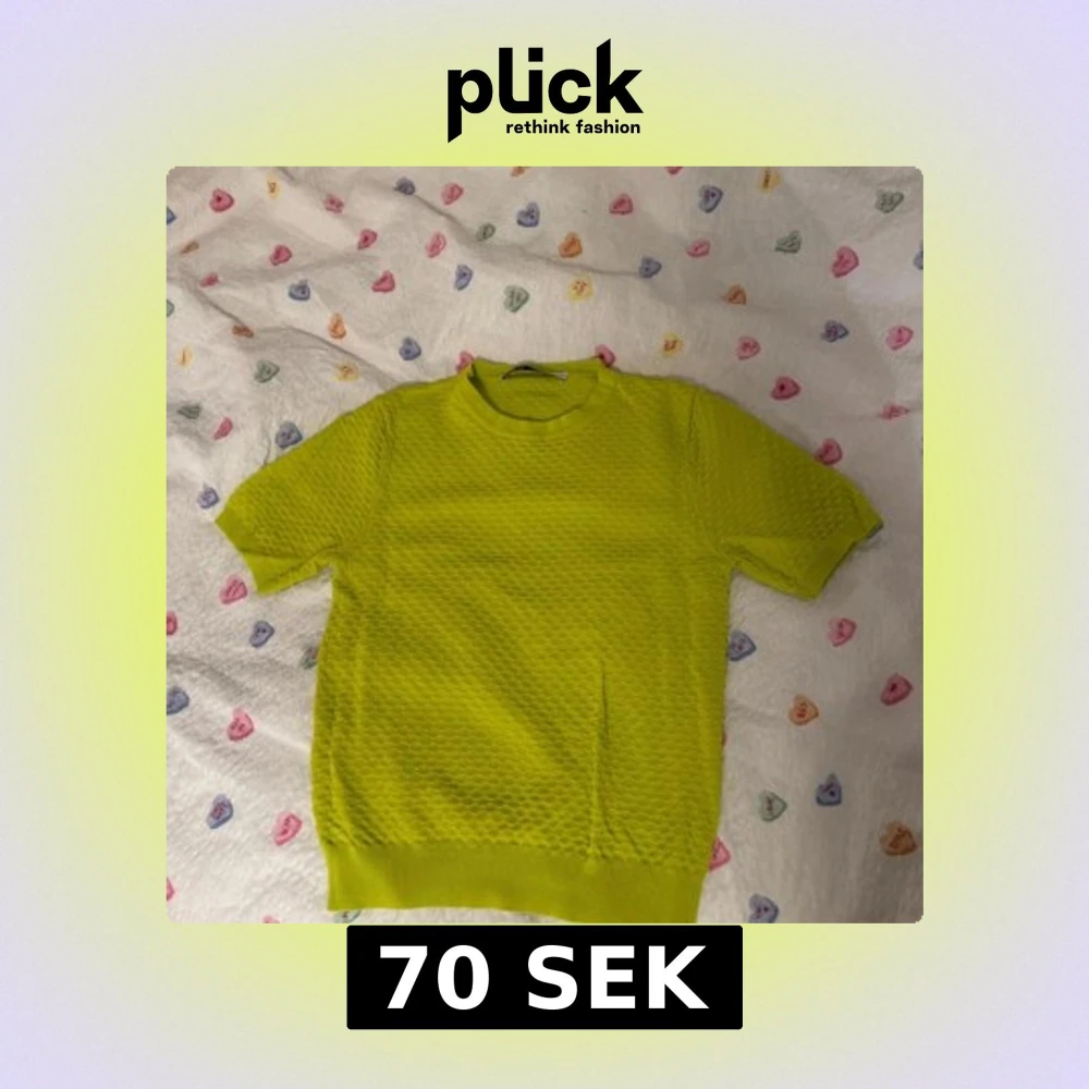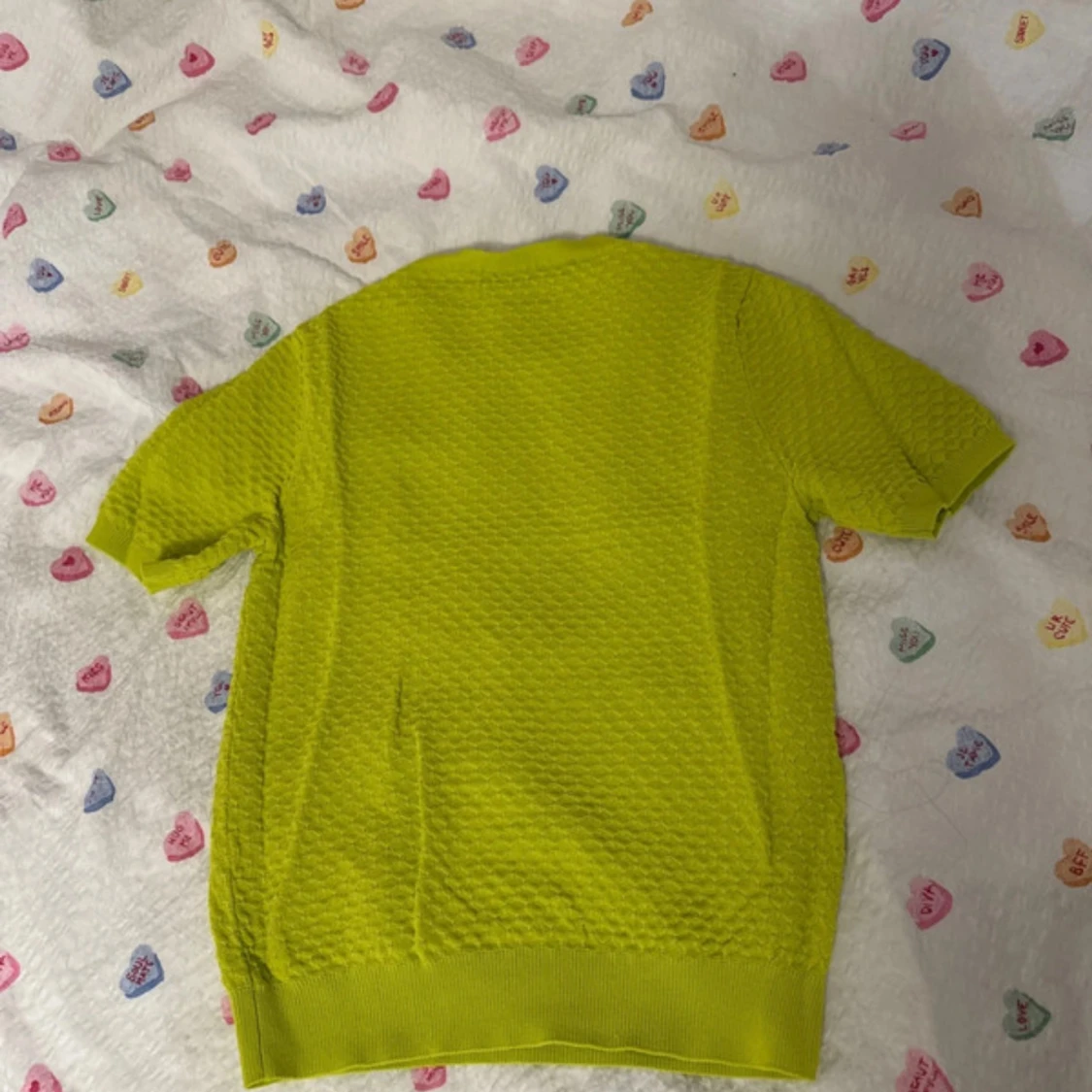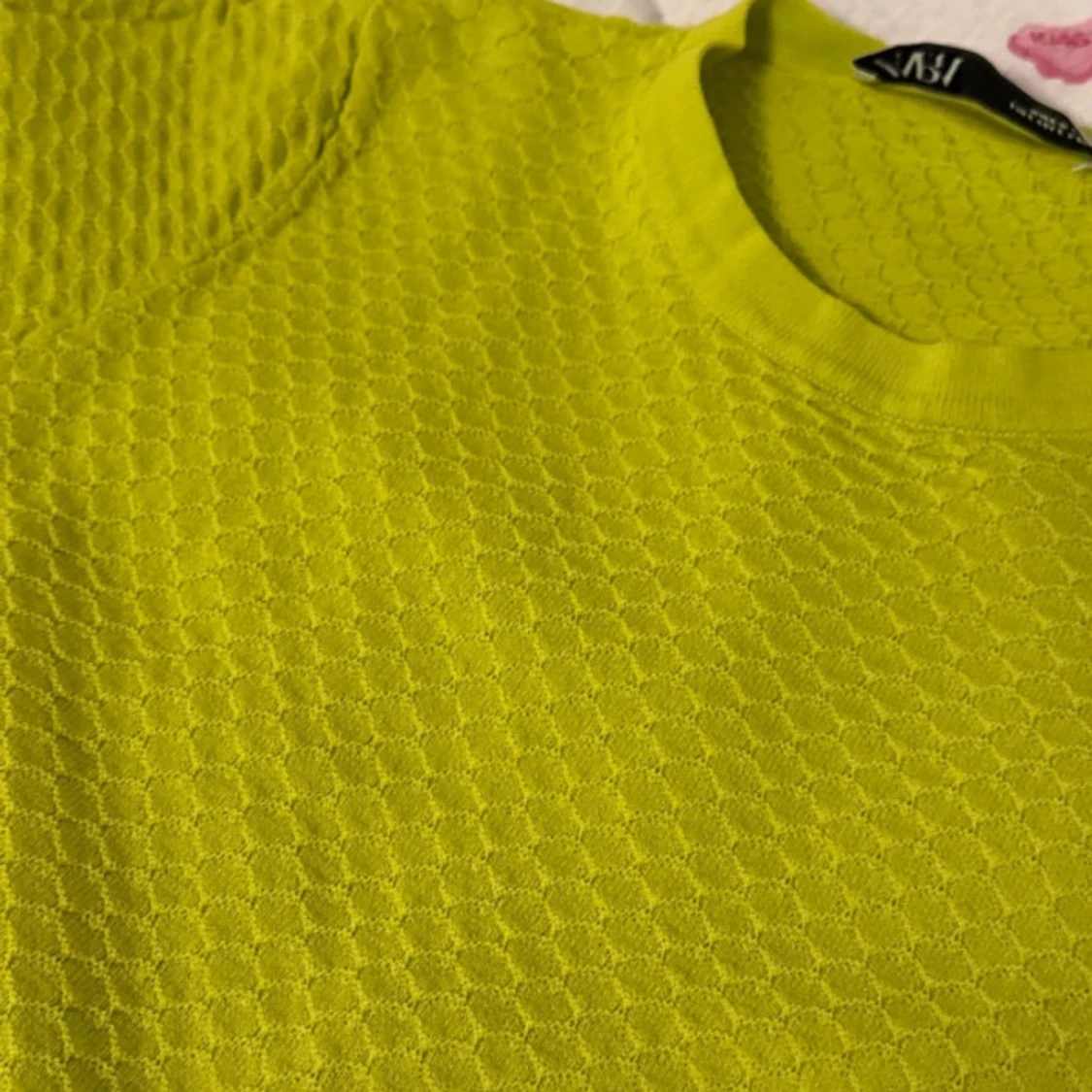 Säljer en cool gul kortärmad tröja från Zara med strukturmönster över hela tyget. Säljer då den är för liten, färgen är neon. Passar XS-S