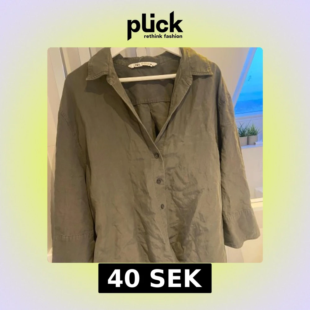 Säljer en olivgrön skjorta från Zara med knappar framtill. Skjortan har en avslappnad passform och långa ärmar. Perfekt för en stilren och bekväm look.