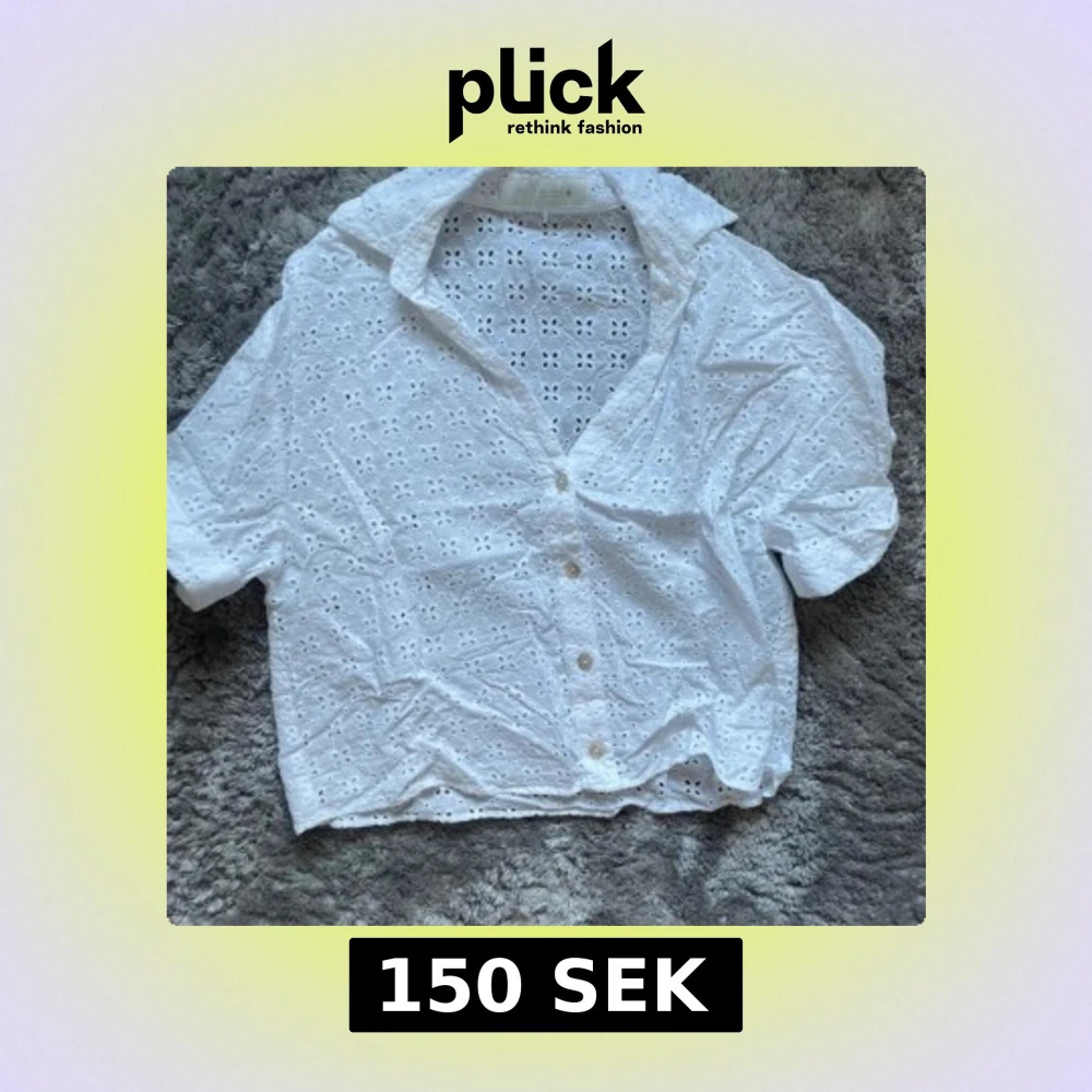 Superfin vit skjorta med korta Àrmar och broderade blommor i tyget. Skjortan har knappar framtill och en luftig, croppad passform. Perfekt för varma dagar och ger en frÀsch och somrig vibe.