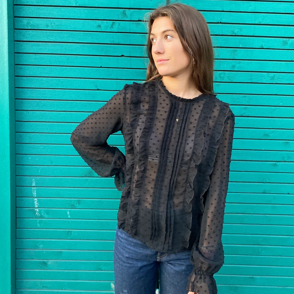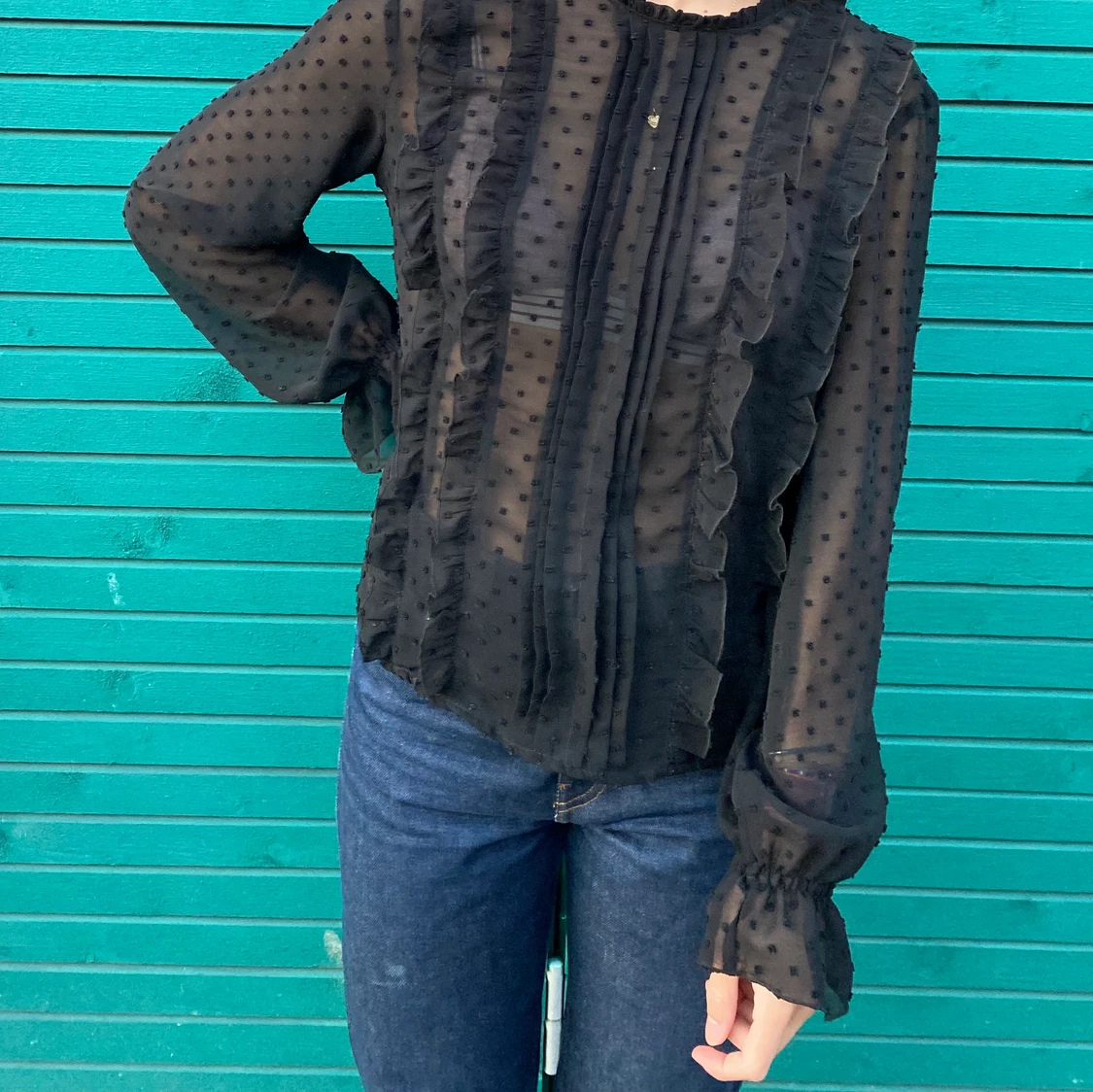 Sort blonde skjorte med prikker og flæser fra Zara, let gennemsigtigt og meget elegant !