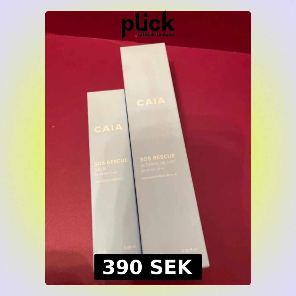 Två produkter från CAIA: SOS Rescue Balm med sheasmör och vitamin E samt SOS Rescue Glowing Oil Mist med niacinamid och blue tansy oil. Båda passar alla hudtyper och kommer i ljusblå förpackningar. Perfekt för dig som vill boosta din hudvårdsrutin.