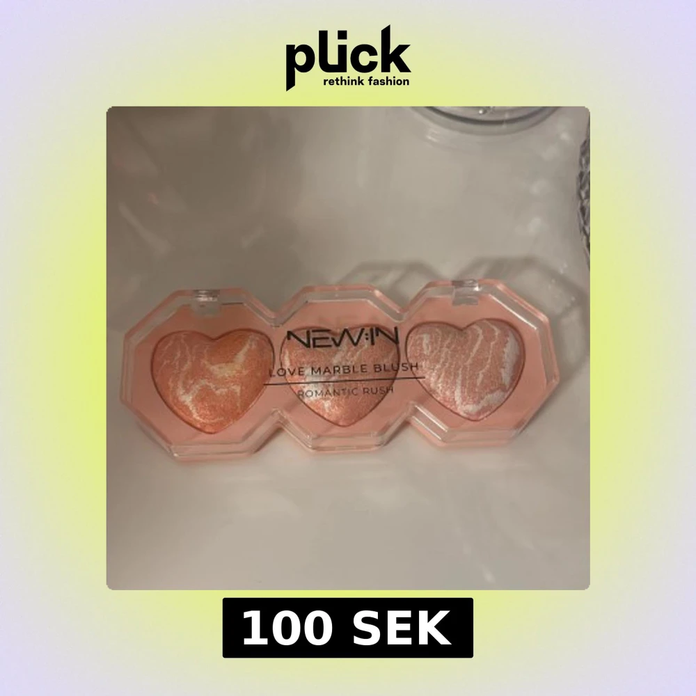 Superfin blushpalett med tre hjärtformade rouge i marmorerade nyanser av persika och rosa. Kommer i en transparent ask och ger ett fräscht glow till kinderna. Perfekt för att skapa en romantisk look med skimrande finish.