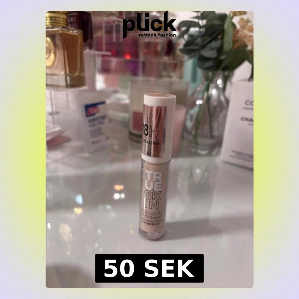 Catrice True Skin High Cover Concealer med hyaluronsyra, 18h återfuktning och vattenfast formula. Kommer i en smidig tub med vit och roséguldig kork. Perfekt för att täcka mörka ringar och ojämnheter med naturligt resultat.