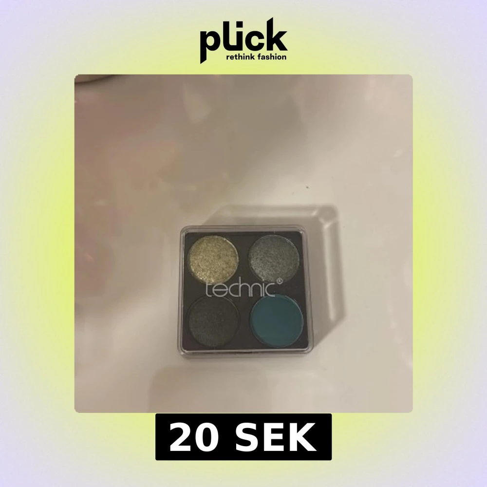 Palett med fyra ögonskuggor från Technic. Innehåller en glittrig guld, skimrande silvergrå, matt svart och en djup turkosblå nyans. Perfekt för att skapa både dramatiska och kreativa ögonlooker. Kompakt och smidig för necessären.