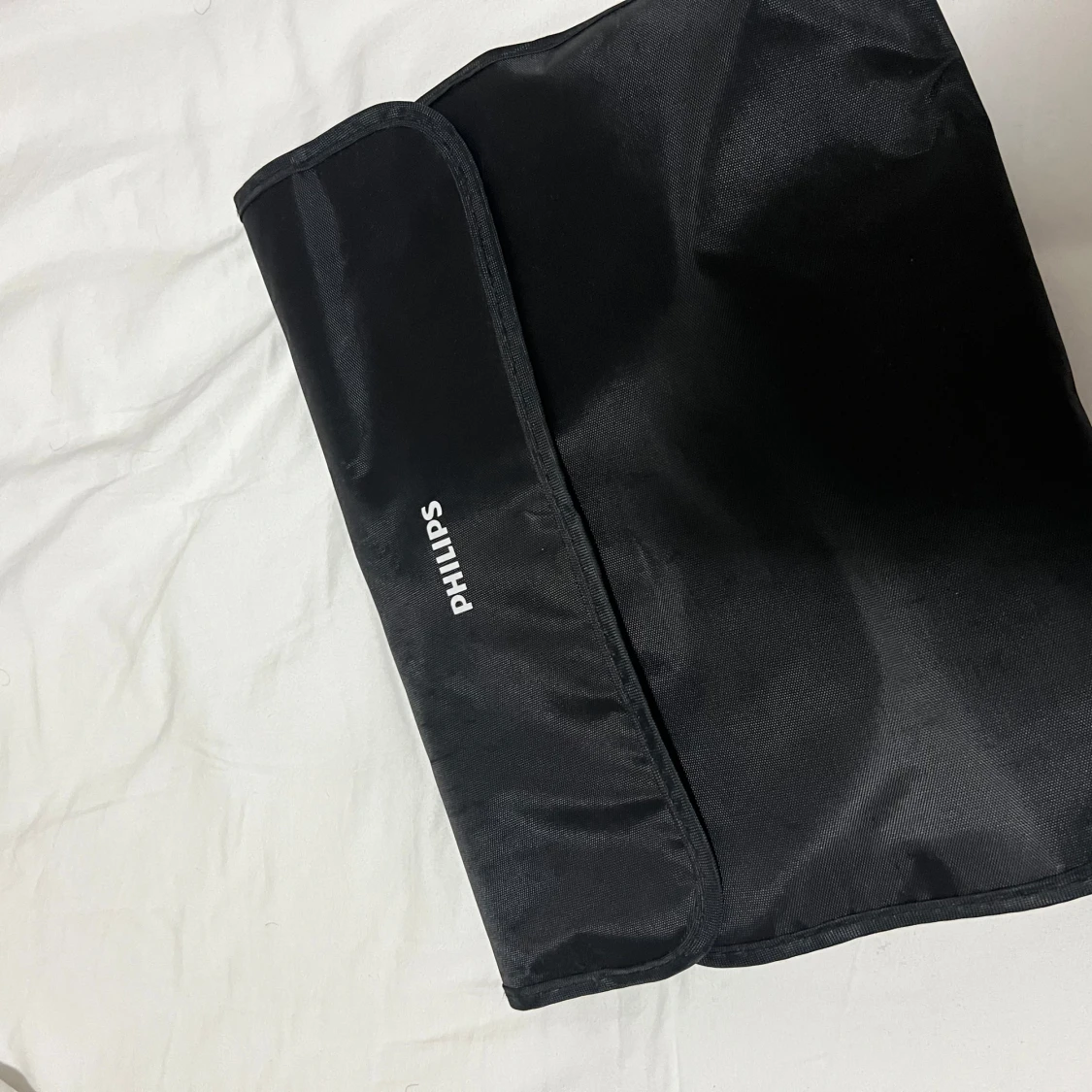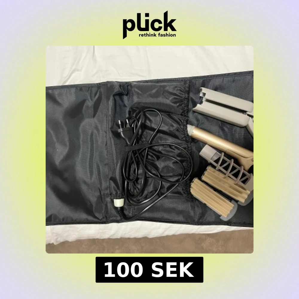 Säljer ett Philips stylingverktyg med flera utbytbara plattor och tillbehör, perfekt för att skapa olika frisyrer. Kommer med en svart förvaringsväska med Philips-logga. Verktyget har en guldig och grå finish och är elektriskt med sladd.