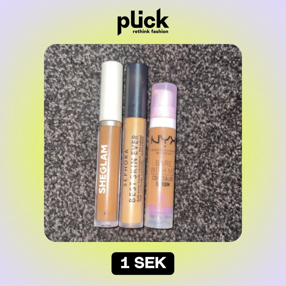 3 concealer från olika märken! Använt Sephora minst 2 ggr Använt Sheglam minst 4 ggr som contour Testat Nyx 1 gång i handen Anledning till varför jag säljer är att eftersom alla tre concealer är för mörka för min hudfärg Dm mej om du är intresserad