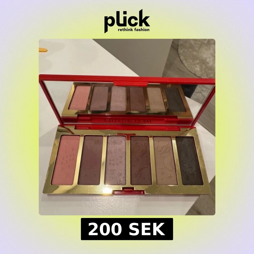 Säljer en limited edition ögonskuggspalett från Estée Lauder, Celestial Glam. Paletten har sex nyanser: rosa, aubergine, lila, taupe, beige och mörkbrun. Snygg röd förpackning med guldstjärnor och stor spegel. Perfekt för kreativa looks och mjuka övergångar. (Öppnad men ej använd)