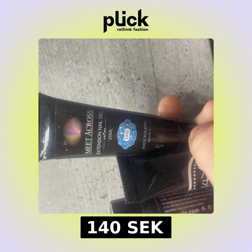 Fyra svarta tuber med nagelgel och stamping gel från Meet Across, Coscelia och N4Y. Tubernas innehåll är för nagelförlängning och nail art, med volymer på 10-20 ml. Materialet är gel och tuberna har stilren svart design med vita detaljer.