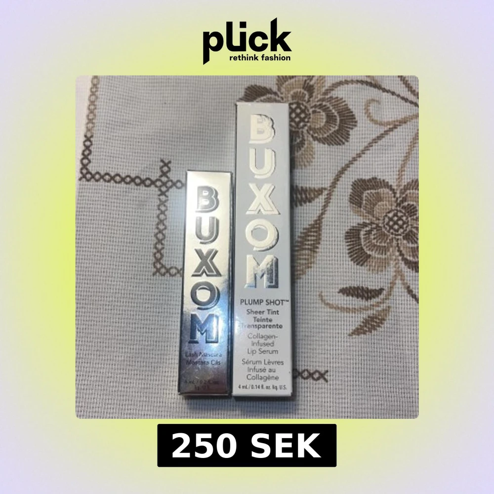 Säljer två sminkprodukter från Buxom: Lash Mascara för fylliga fransar och Plump Shot Lip Serum i färgen Dolly Babe, en transparent rosa nyans med kollagen. Har en plumping effekt. Mascaran oanvänd, läppglaset swipeat på handen för att se färg endast 1 gång.