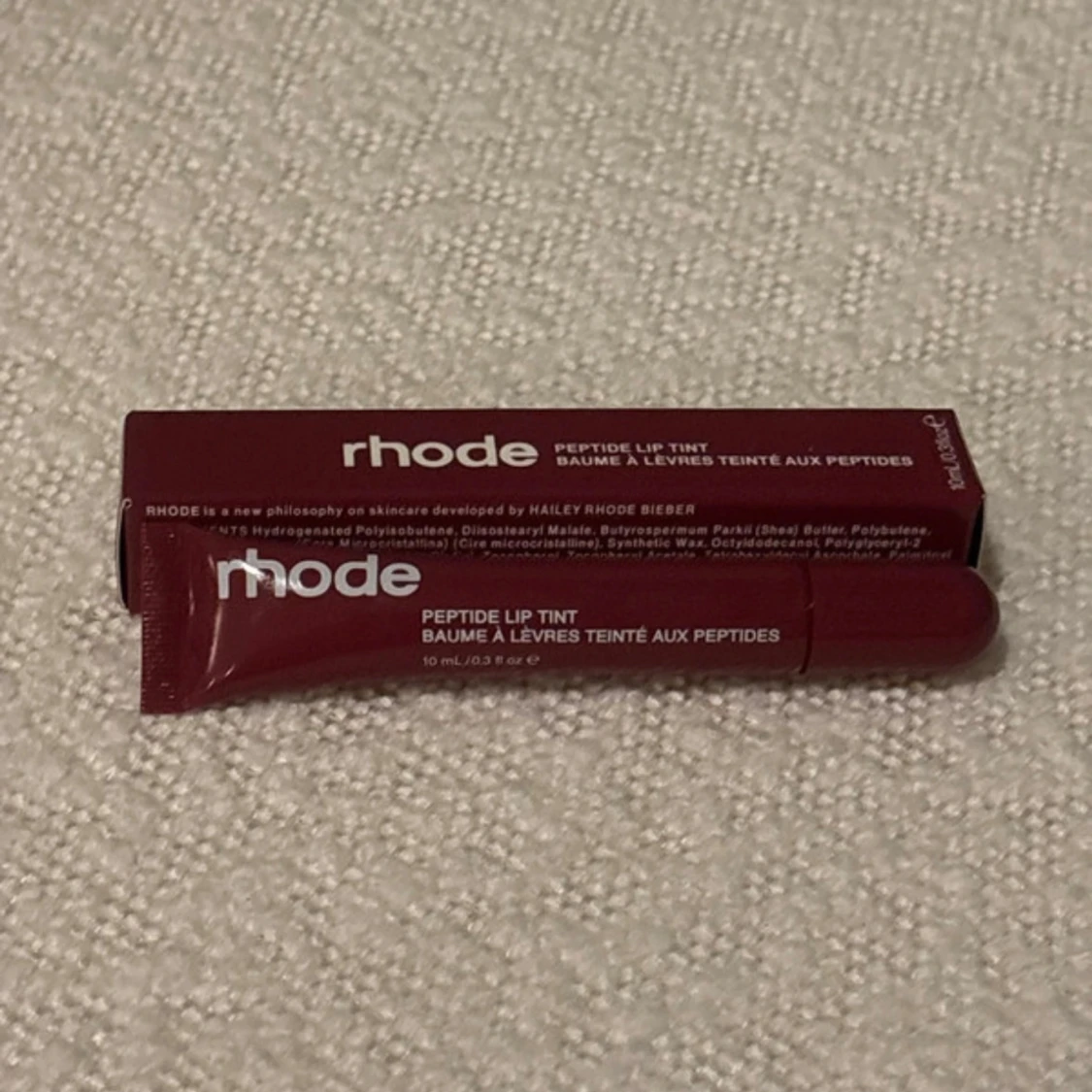 Rhode Peptide Lip Tint i en bärig, mörkröd nyans. Kommer i en smidig tub med skruvkork och rymmer 10 ml. Ger läpparna en snygg tint och innehåller peptider för extra vård. Perfekt för dig som vill ha både färg och återfuktning i ett.