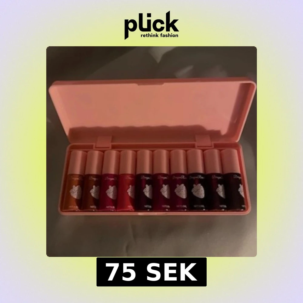 Ett set med tio små läppglans i olika nyanser av rött, rosa och orange, förpackade i en söt rosa ask med jordgubbsmotiv. Perfekt för dig som vill variera din look med flera färger. Varje läppglans har en smidig applikator och söt design.