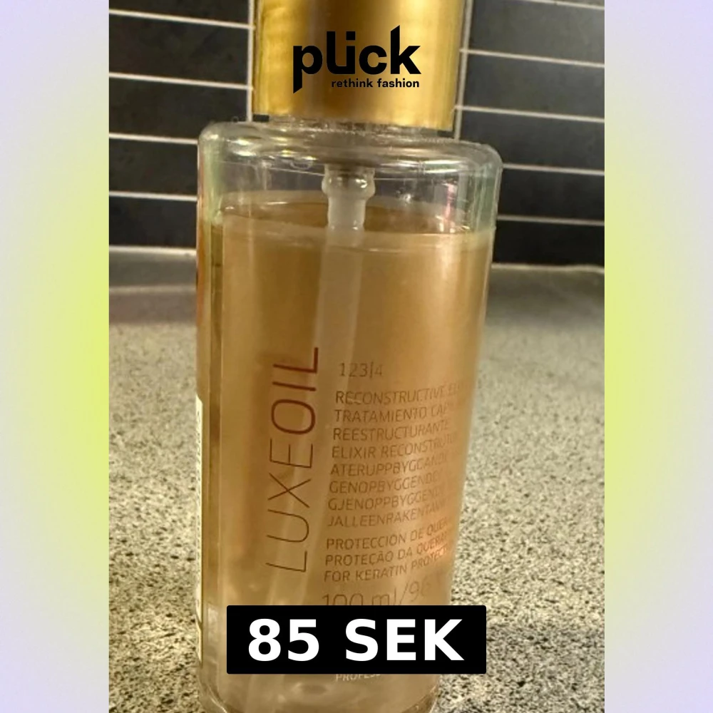 Wella Luxe Oil Face Mist i en genomskinlig glasflaska med guldigt pumpmunstycke. Innehåller 100 ml elixir som ger återfuktning och skydd för håret utan att det blir fettigt. OBS! Ca 90% kvar!! Ärliga och snabba affärer uppskattas:)