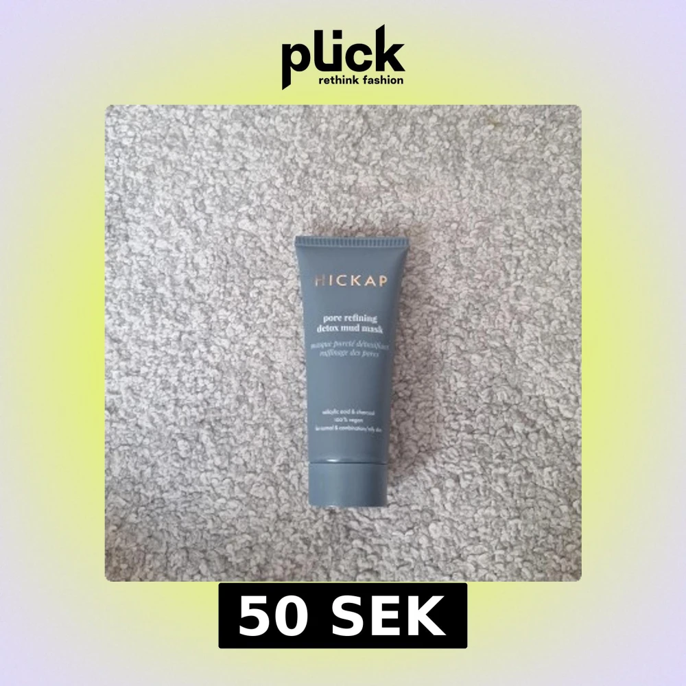 En grå detox lermask från Hickap med salicylsyra och aktivt kol som rengör på djupet och minskar porer. 100% vegansk och passar blandhy och oljig hy. Tuben rymmer 100 ml och masken har en krämig konsistens som appliceras i ett tunt lager. Den är endast testad på handen en gång, därav priset!