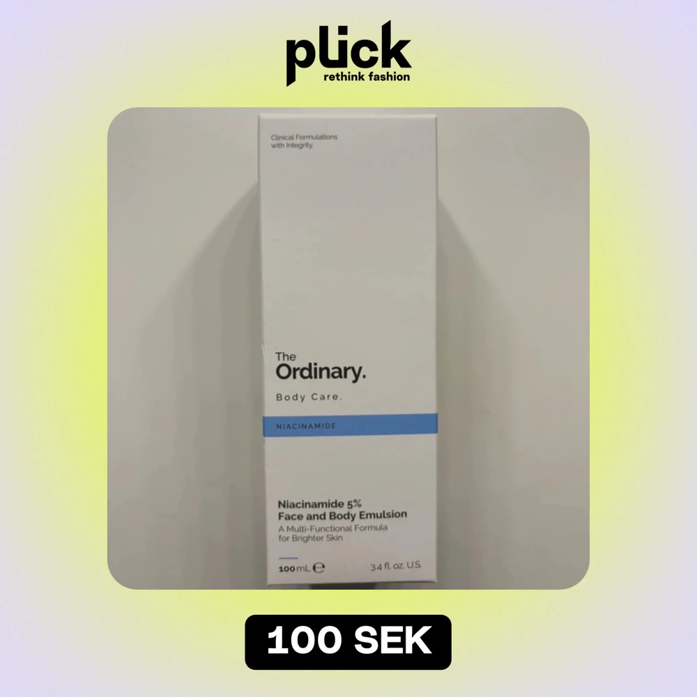 Säljer en flaska Niacinamide 5% Face and Body Emulsion från The Ordinary. Denna multifunktionella formula är perfekt för att ljusa upp huden och ge en jämnare hudton. Flaskan innehåller 100 ml och är oöppnad. Perfekt för både ansikte och kropp!