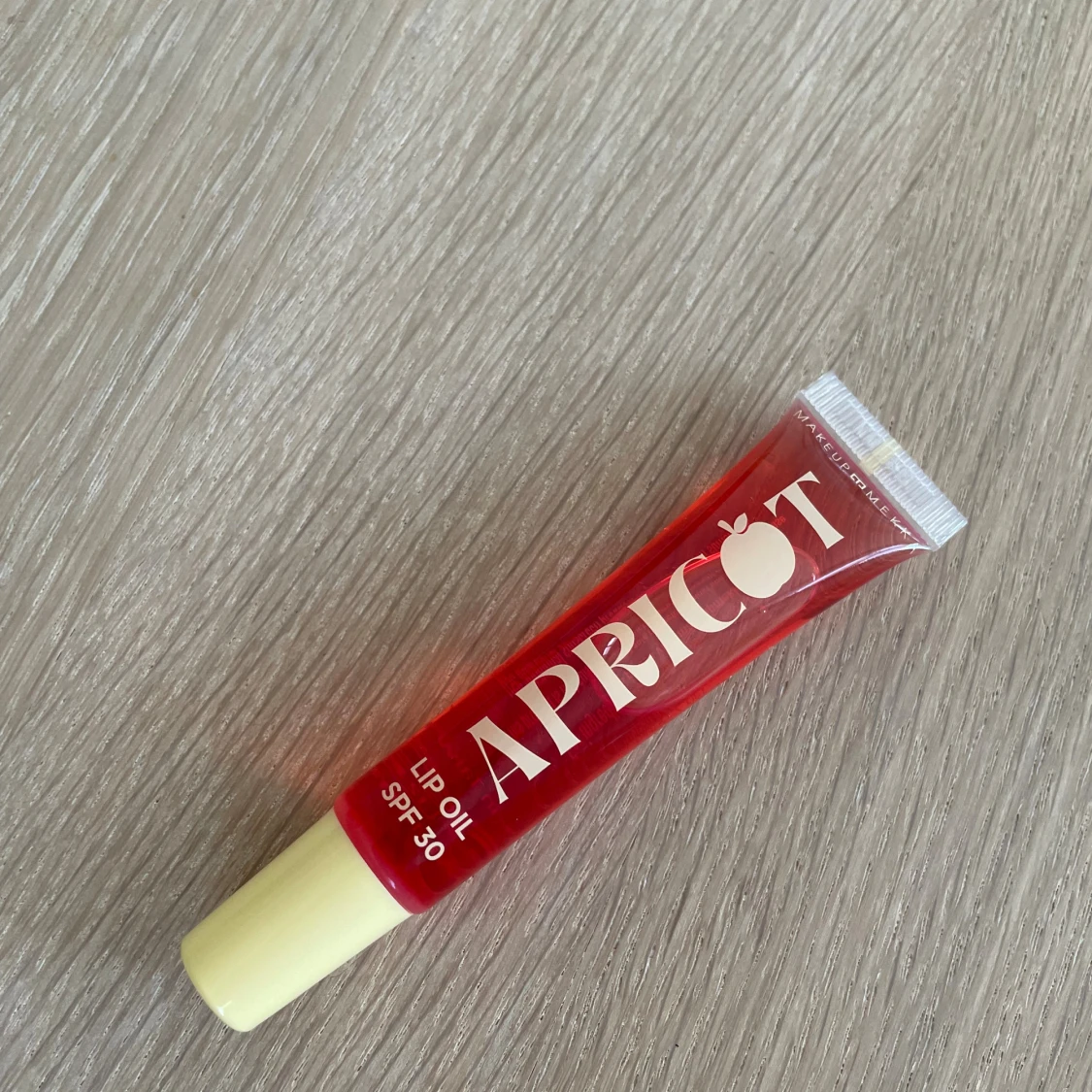 Superfräsch läppolja i klarröd tub med SPF 30 från Makeup Mekka. Ger glansiga, återfuktade läppar och har en söt aprikosdoft. Perfekt att ha i väskan för en juicy look och skydd mot solen.
