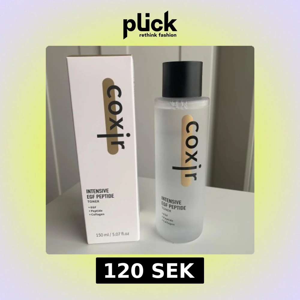 Coxir Intensive EGF Peptide Toner är en återfuktande toner med EGF, peptider och kollagen. Den kommer i en stilren flaska på 150 ml med svart lock. Perfekt för att ge huden en fräsch och uppstramande känsla.