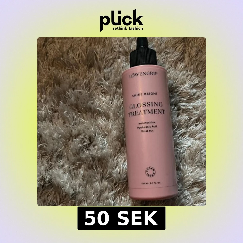 Glossing Treatment från Löwengrip i en snygg rosa flaska med svart kork. Innehåller hyaluronsyra och ger direkt glans. Vegansk formula, 150 ml. Perfekt för dig som vill boosta hårets lyster med en lyxig känsla.