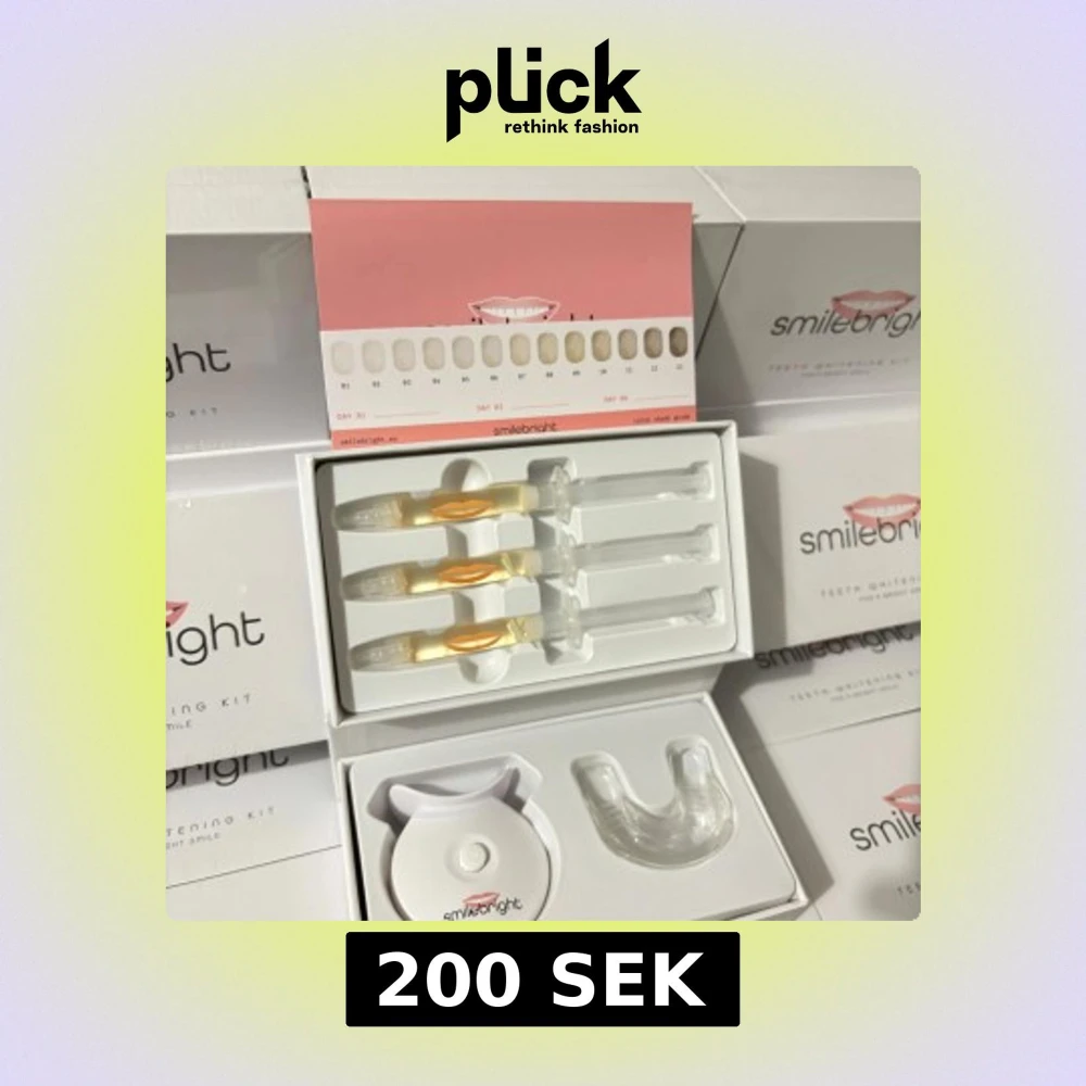 SmileBright tandblekningskit innehåller tre sprutor med blekningsgel och en LED-lampa för effektiv tandblekning hemma. Kitet inkluderar även en tandformad skena för enkel applicering. Perfekt för att uppnå ett vitare leende.